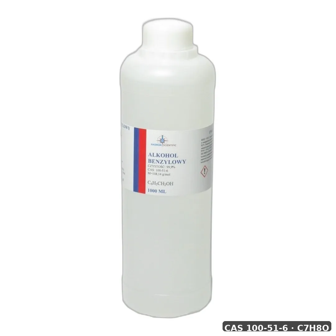 Substancja fenylometanol jest jednoznacznie identyfikowana przez numer CAS 100-51-6, wzór chemiczny C7H8O, nazwa łacińska Alcohol benzylicus. Powszechnie znana również jako: alkohol benzylowy. Te identyfikatory pozwalają zweryfikować autentyczność produktu w międzynarodowych bazach chemicznych takich jak PubChem (NIH/NLM) oraz Common Chemistry (CAS). Każda partia produktu opatrzona jest dokumentacją zgodną z wymogami REACH (WE) nr 1907/2006.