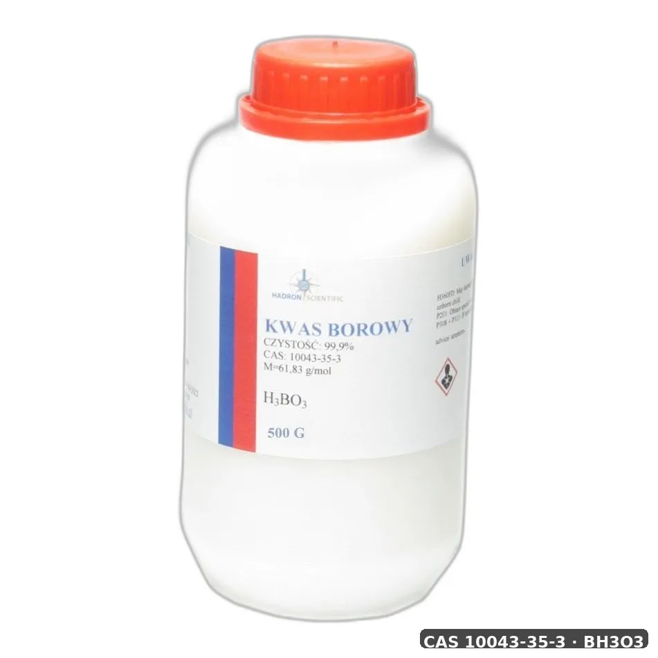 KWAS BOROWY CZ. (BH3O3) powszechnie znana jako kwas borny, kwas borowy to odczynnik chemiczny przeznaczony wyłącznie do zastosowań laboratoryjnych, badawczych i profesjonalnych.